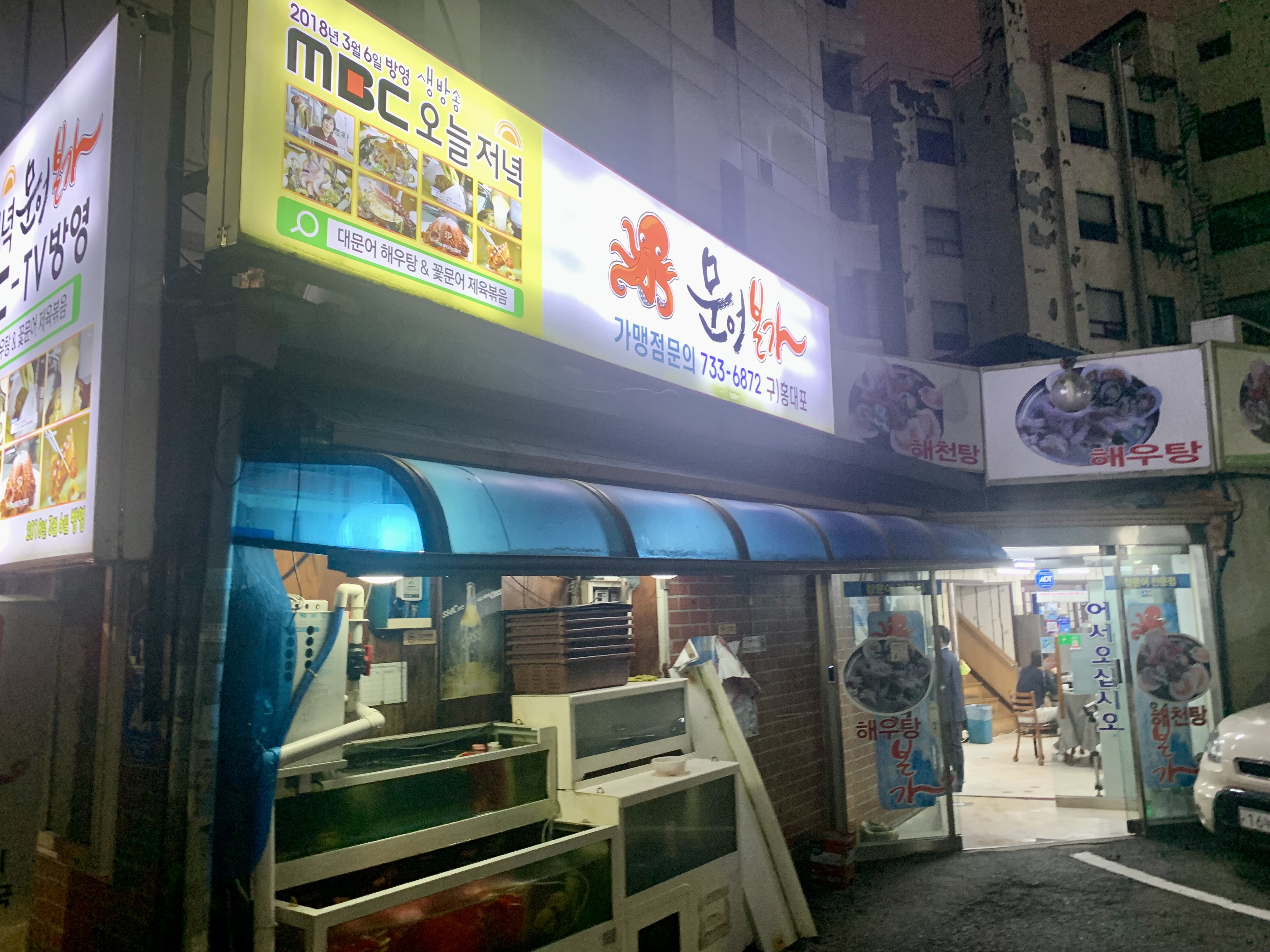 肉が続くので海鮮🐟🐚が食べたいという事で韓国双日の近隣にある海鮮鍋のお店(名前不詳)で食事させて頂きました💕💕庶民のお店ですよ!っと念入りして入ったけど、時にはそんなお店も超大歓迎!😝😝ボリューム満点で貝の玉手箱に、タッカンマリ🐓🐓が入り、さらに活タコ🐙🐙が入れられダシだけでも美味しくないはずはありませんよね…腹一杯食べ飲み楽しみました(笑)😝😝