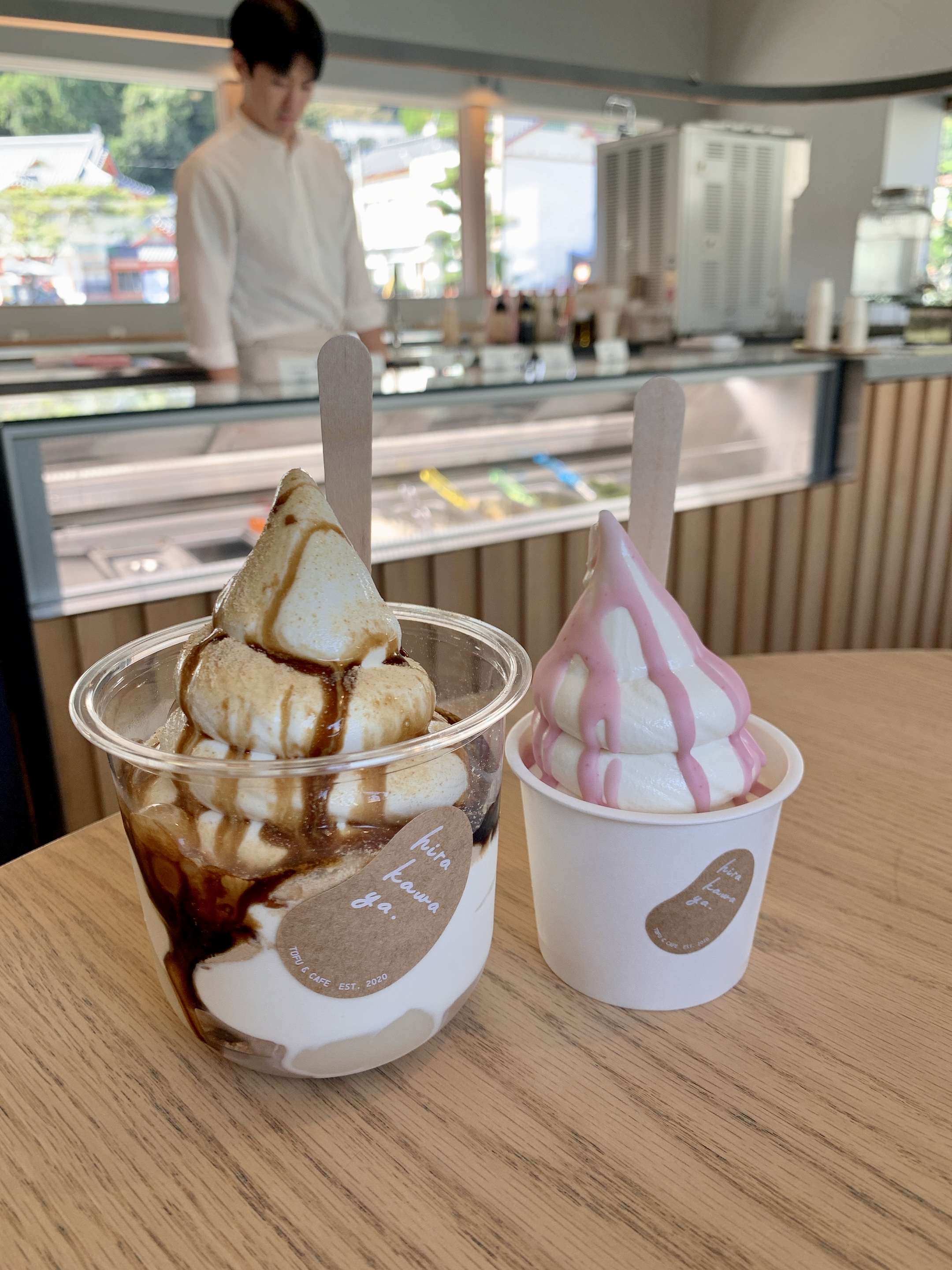 基本豆腐には興味がないんですが…😅😅ホワイト餃子の後にどうしてもスイーツが食べたくなり…向かいました「佐嘉平川屋 武雄温泉本店」!😝😝豆腐をベースにしたスイーツ…なかなか旨しではありませんか!豆腐もスイーツになるとまろやかになるんですね~😋😋