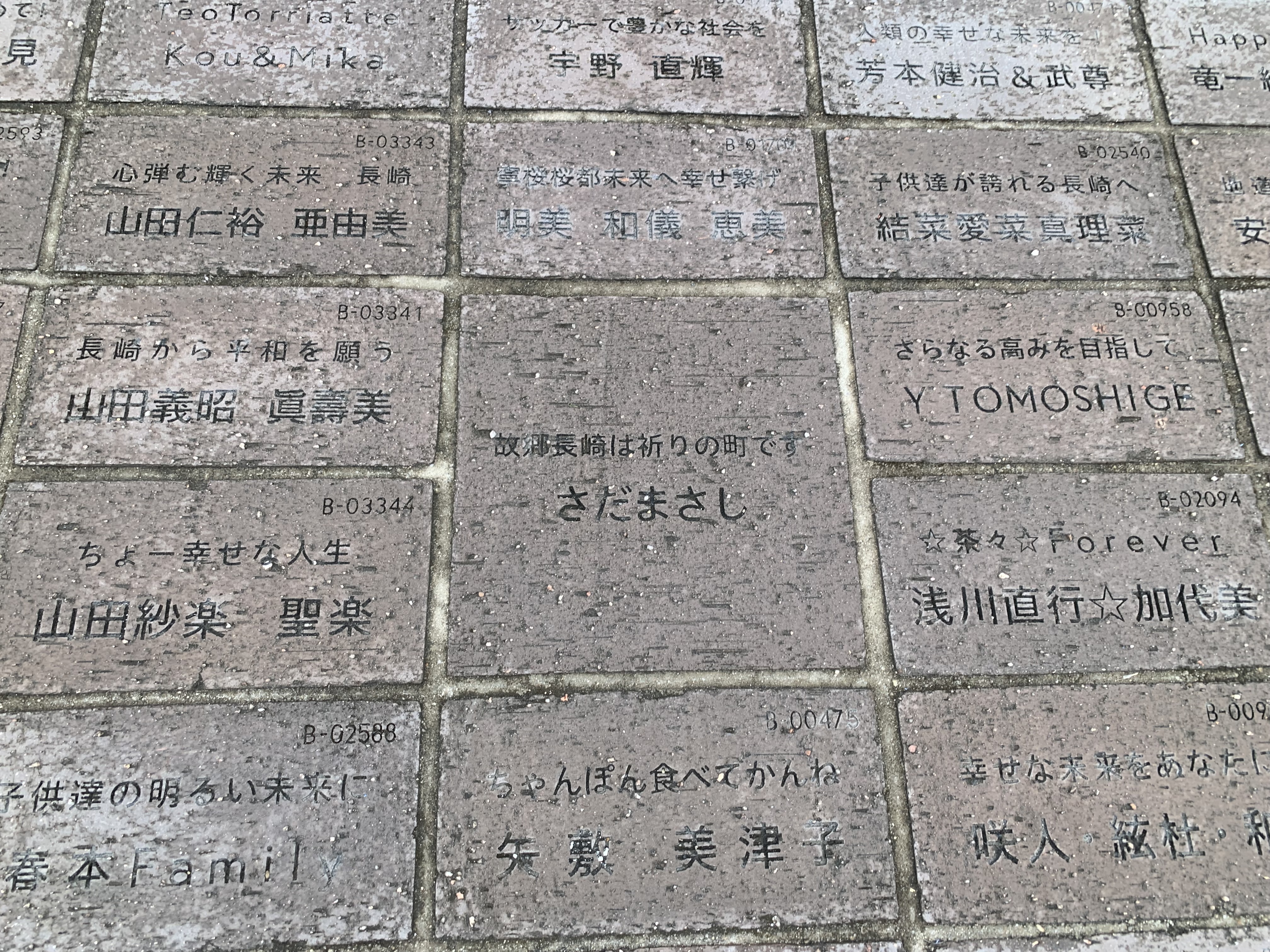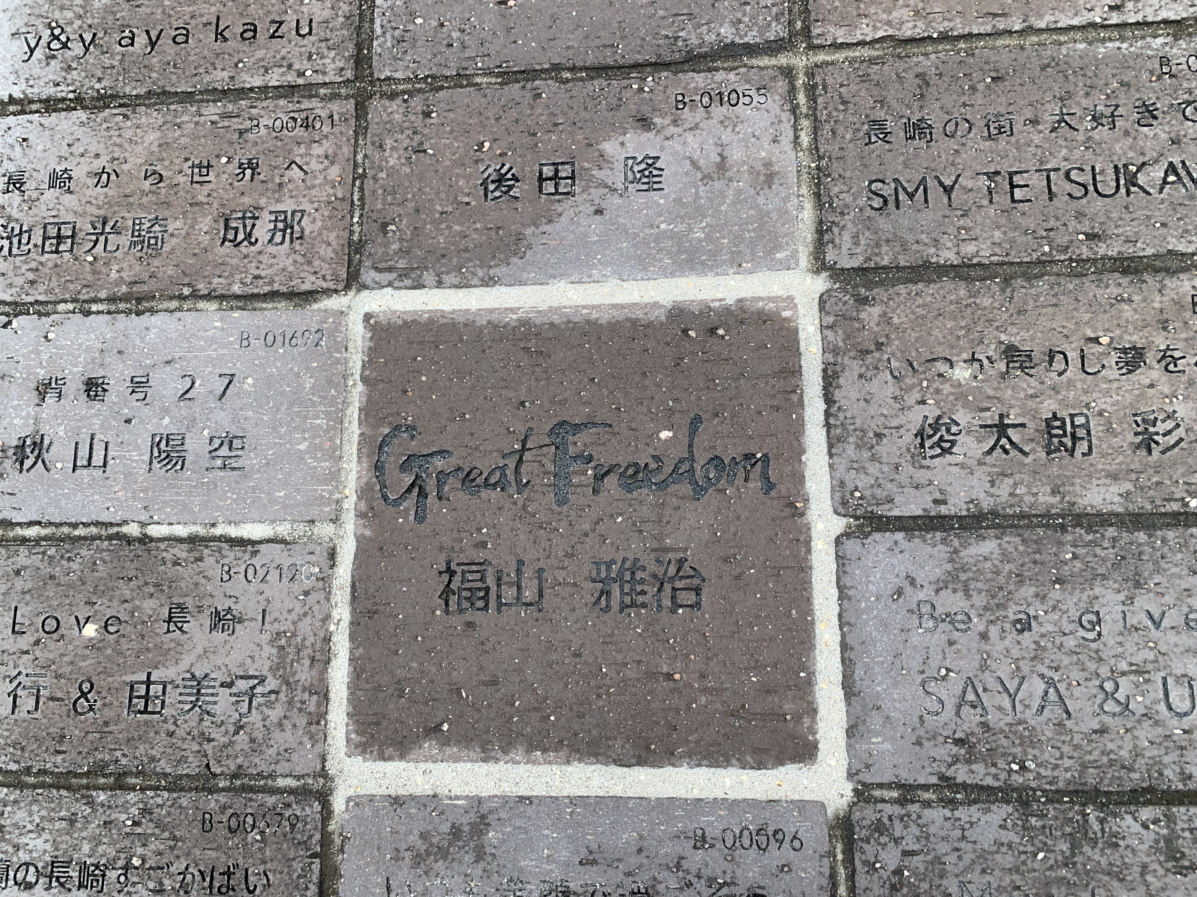 見ると福山雅治、さだまさしのプレートも…(レンガ一枚は18,000円との事ですがレンガ二枚は30万円に跳ね上がるらしい)(笑)😝😝