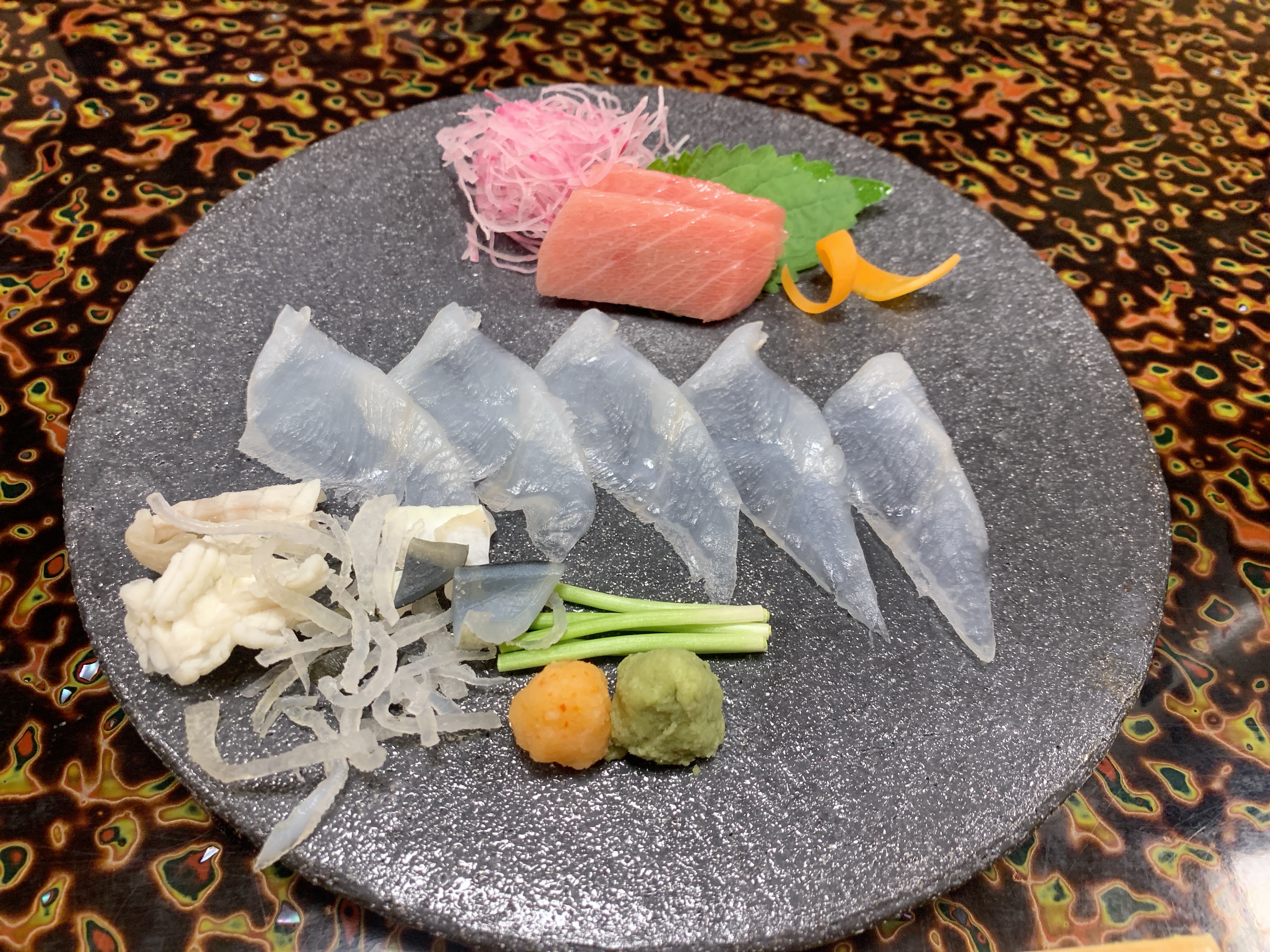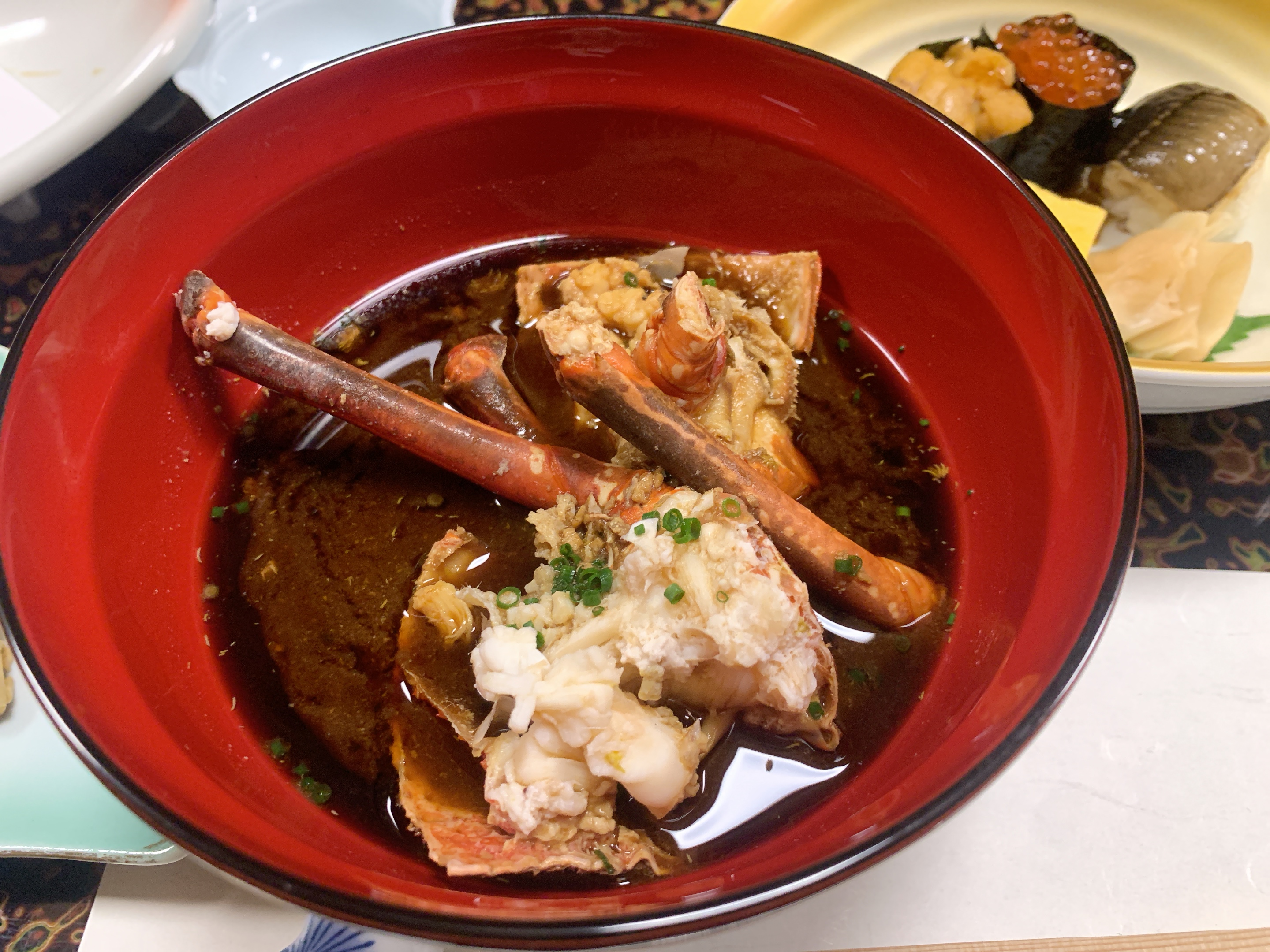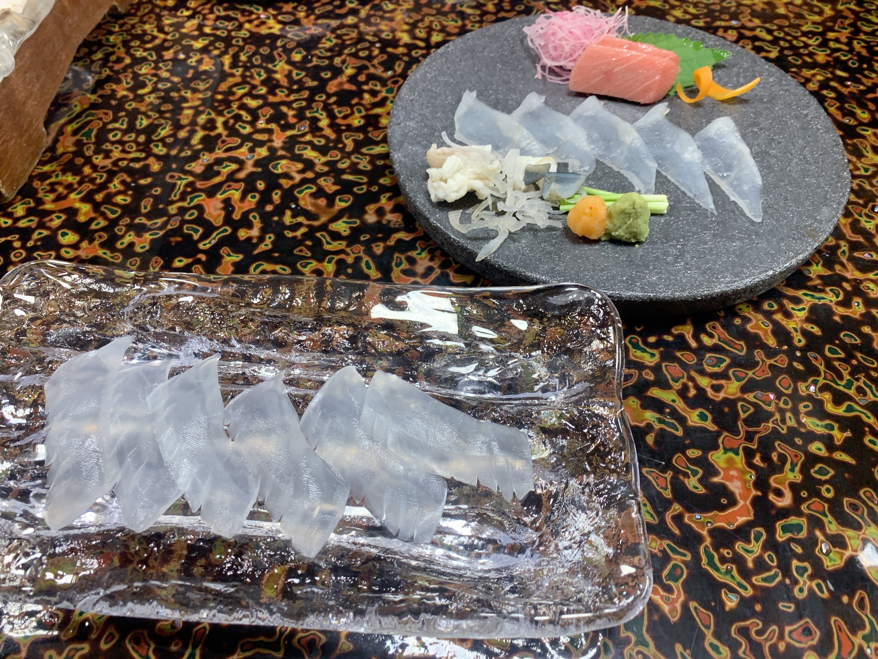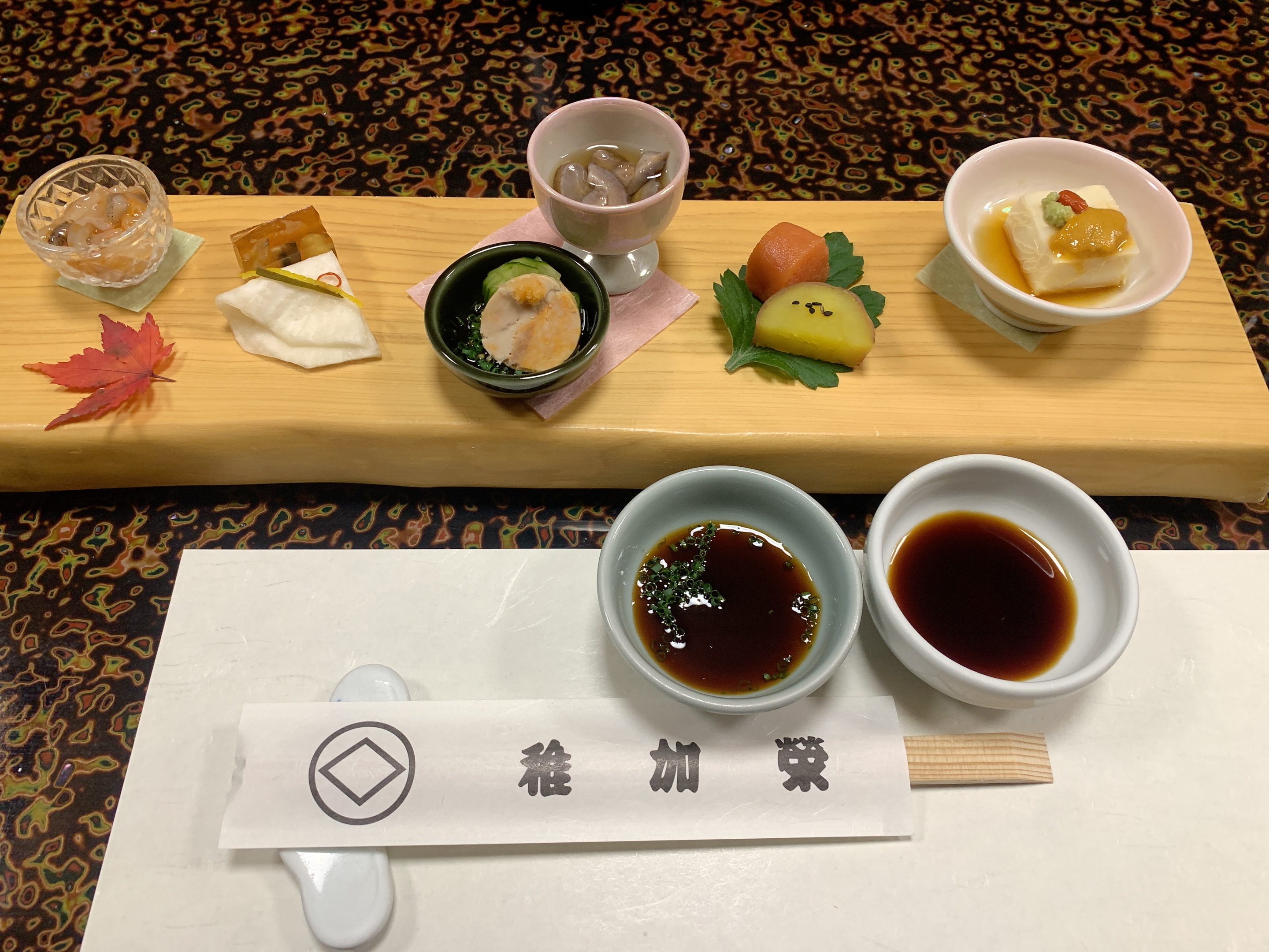 今日の稚加榮は凄い!😍😍魚屋さんのオーナーが九大出身という事もあり差入れが入ってたんですが…伊勢海老に烏賊とは恐れ入りました(笑) 😋😋料理の内容も非常によく高級食材を惜しみなく使ってるな…っと思った次第です(笑)😝😝