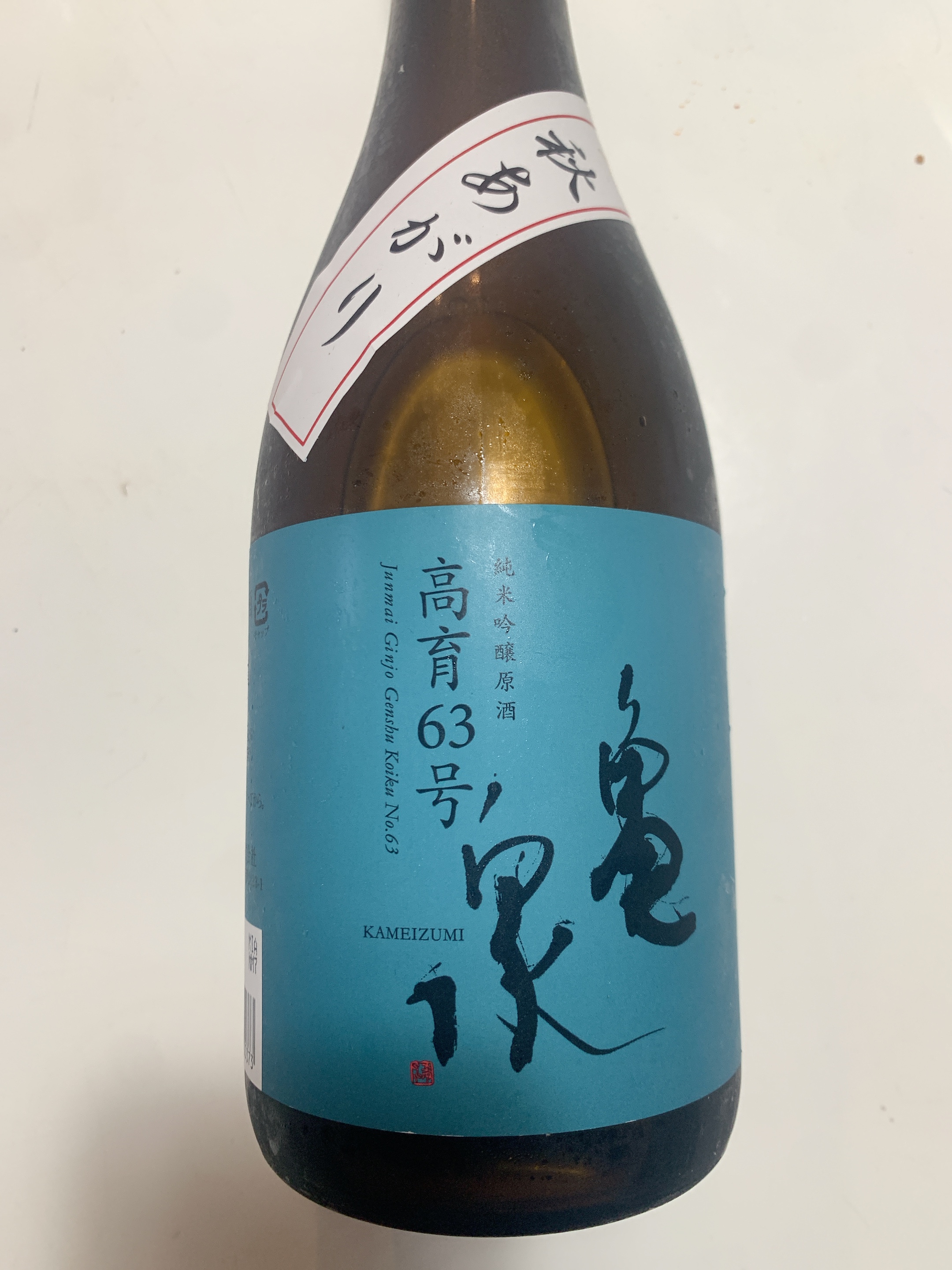 亀泉 高育63号 純米吟醸原酒 秋あがり ~亀泉酒造~